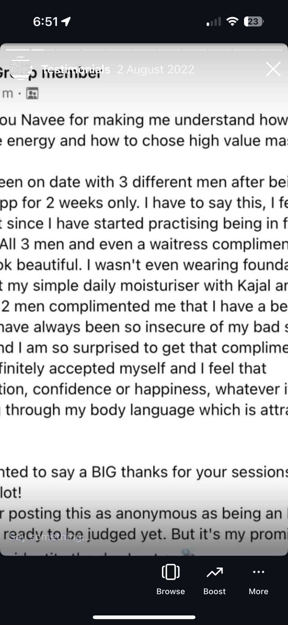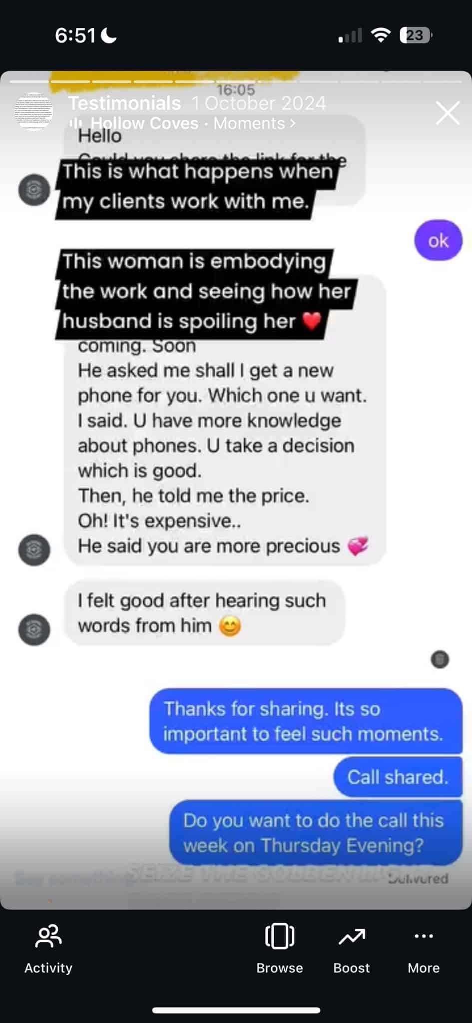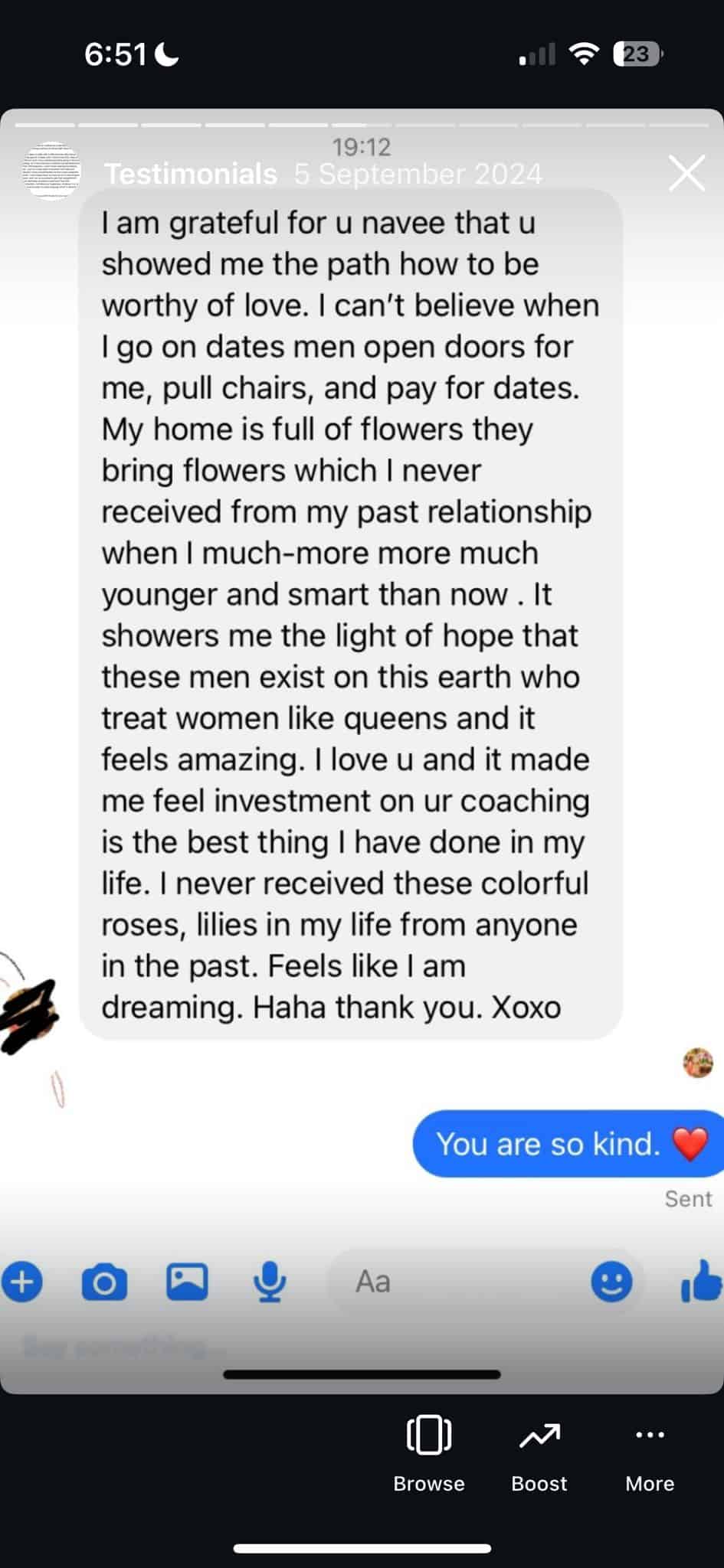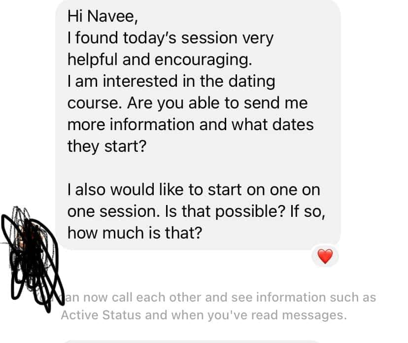 Get direct support from me between calls. Ask questions after dates, get guidance on tricky conversations, and celebrate your wins with women walking the same path.
