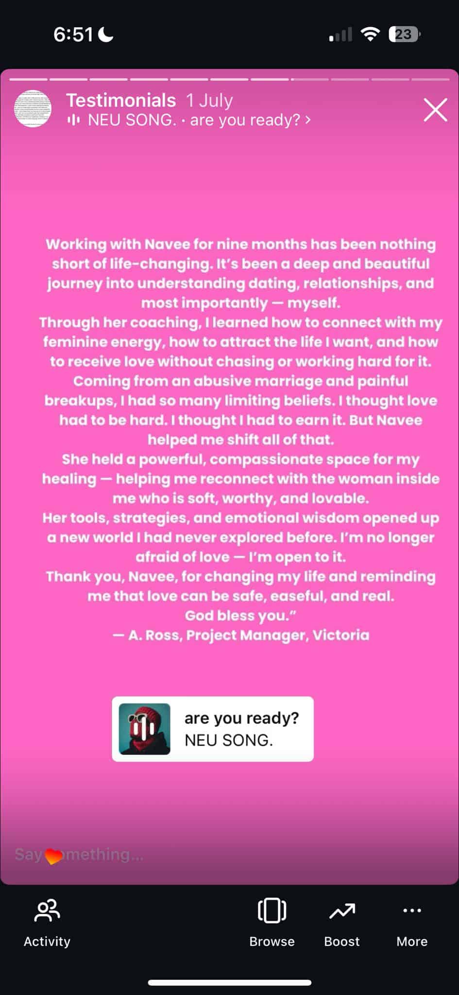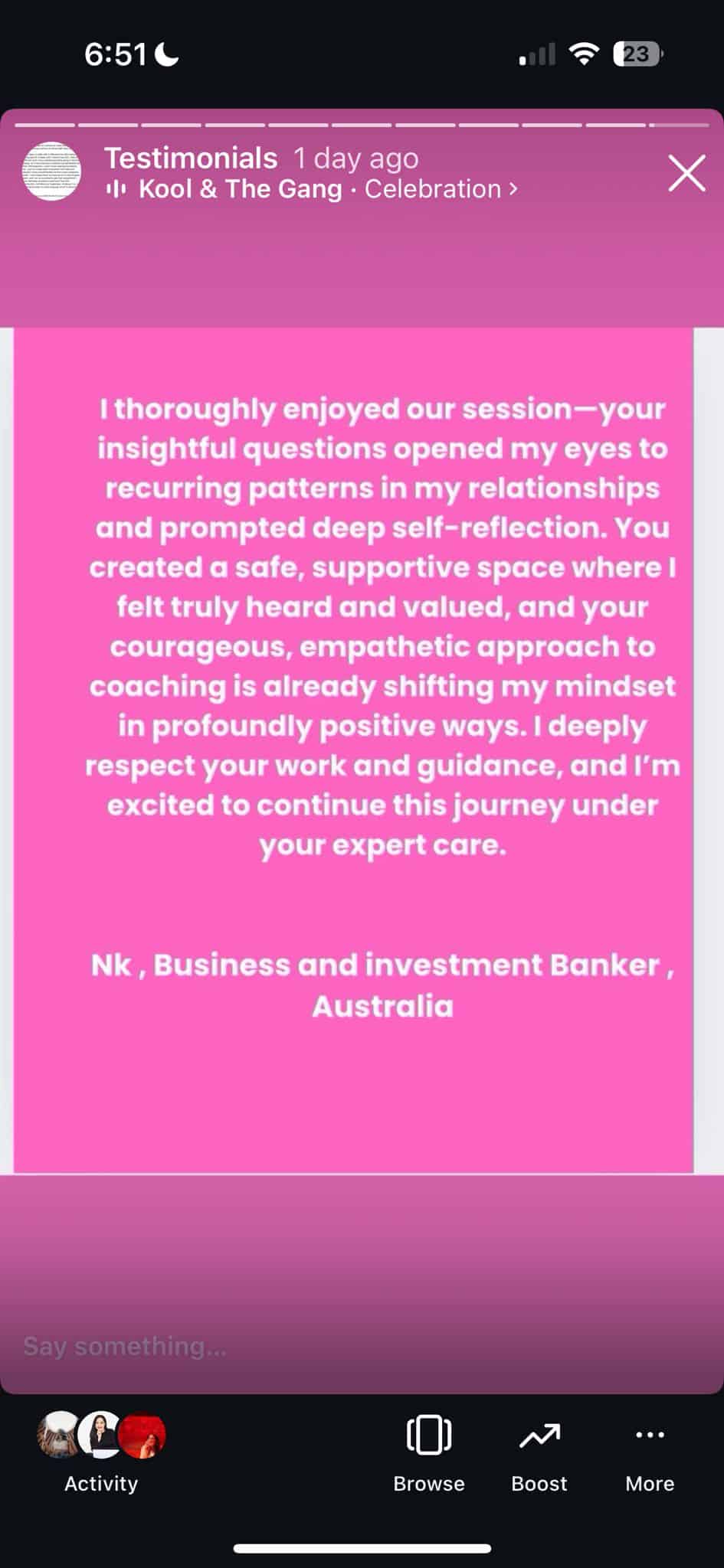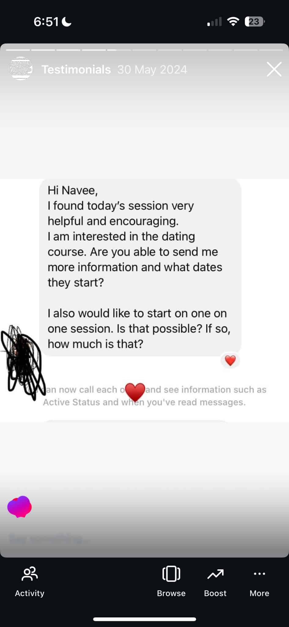 Get direct support from me between calls. Ask questions after dates, get guidance on tricky conversations, and celebrate your wins with women walking the same path.